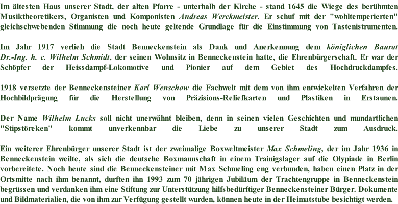 Ferienwohnungen  „Anna“ ,  „Dorle“ und  ein Ferienhaus mit drei Schlafzimmern   in Benneckenstein Berühmte Bürger der Stadt Benneckenstein